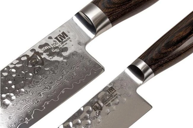 This Kai Tim Mälzer set is designed by top chef Tim Mälzer The Kai Tim Mälzer knives are fitted with KAI’s famous damask layered metal structure, combined with a very strong core of VG10 steel. The core of the blade is on the outside enhanced with 32 layers of stainless damask steel. The hardness of these knives is 61’1 HRC, which is exceptionally hard. This keeps this knife sharp for a very long time. The handle is made of brown walnut wood and is very comfortable in the hand for both left and right-handed people. This turning knife is ideal for peeling vegetables and fruit such as potatoes and apples. All in all, a beautiful, functional knife to be loved.