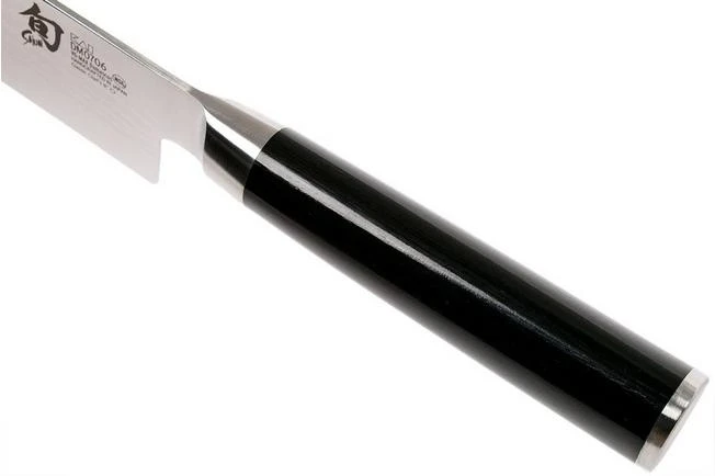 This Kai Shun Classic chef’s knife is a real all-rounder. You use it when cutting vegetables, meat and fish, but also when, for instance, chopping herbs, crushing pepper corns or peeling a clove of garlic. The chef’s knife from the Kai Shun Classic collection is enhanced with an a-symmetrical handle. As such it feels great in hand. This also means that the knife is meant for right-handed use. We also sell a left-handedversion of this knife.