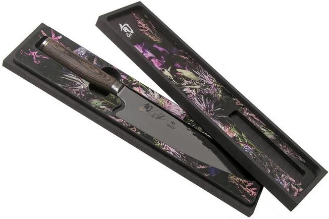Kai Europe celebrates its 11-year collaboration with master-chef Tim Mälzer with this exclusive Kai Shun Premium Tim Mälzer Limited Edition kiritsuke 20 cm. A special edition with a matt, brown-grained handle and 20 cm hammered blade. In addition, the blade is enhanced with the exclusive Edition XL logo and Tim Mälzer’s autograph. This knife was only produced 5555 times and each is numbered. As such each knife is a unique collector’s object. We are happy and proud to be able to offer these knives to our customers. Of course, these knives are numbered.