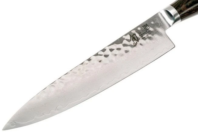 The Kai Shun Premium Tim Mälzer utility knife 15 cm is one of the many kitchen knives from the Tim Mälzer collection from Kai. The knife has a slim, long blade and can be used for a wide range of cutting tasks. The blade is curved and ends up in a pointed tip. This allows you to rock the knife to chop food. The point is used for the precise cutting tasks. For every task in the kitchen a chef’s knife is a little too big, you can use this knife. Whether it’s cutting cheese, sausage or finely chopping herbs.
