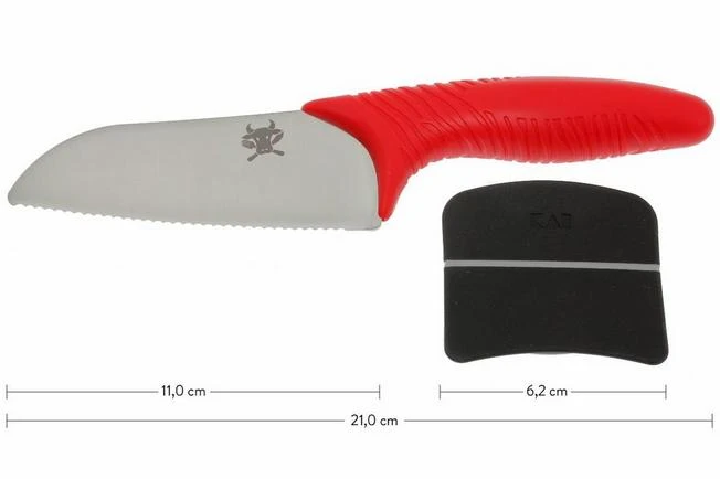 Tim Mälzer has created a special knife for children, to make sure that Kai Shun enthusiasts can pass on their passion to the next generation. He is convinced that, when children can help in the kitchen, they will learn about and be more aware of food. Which is important for the rest of their lives! Of course, they do have to be able to work safely and that’s why this knife has a relatively large handle with ridges. The finger protector, dimensions 6.2×5.8 cm, will protect the inexperienced chef from little accidents. The finger protector has a flexible strip, so it can bend with the fingers. Of course, supervision remains prudent, but kids can safely help out in the kitchen with this knife.