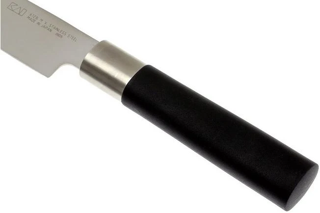 Kai is known for its high-quality Kai Shun kitchen knives. With this Kai Wasabi collection, this high quality is now also available for a more affordable price. The stainless steel blade made from Daido 1K6 steel has a thin grind and is hardened to a hardness of 58 HRC. Because the knife doesn’t have a crop you can use the entire edge. This also makes it easier to sharpen. The handle is made of a combination of bamboo powder and polypropylene. This makes the handle sustainable and waterproof.